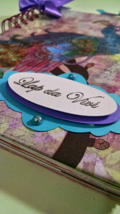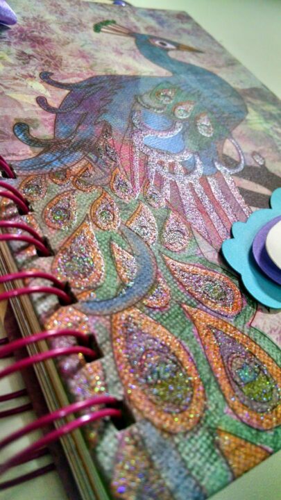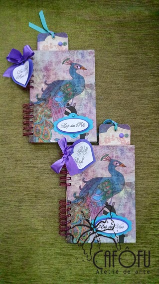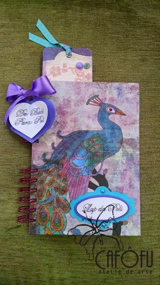 O papel de scrap escolhido para confeccionar as capas foi com desenho de pavão. Você sabe o que significa pavão? Tem tudo haver com tudo! rsrs
