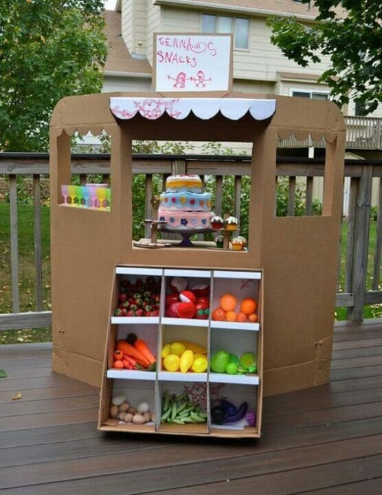 Muito fofa essa barraquinha de feira para a criançada brincar de comprinhas, vendinhas e até mesmo para decorar uma festa relacionada com o tema. Clique AQUI.