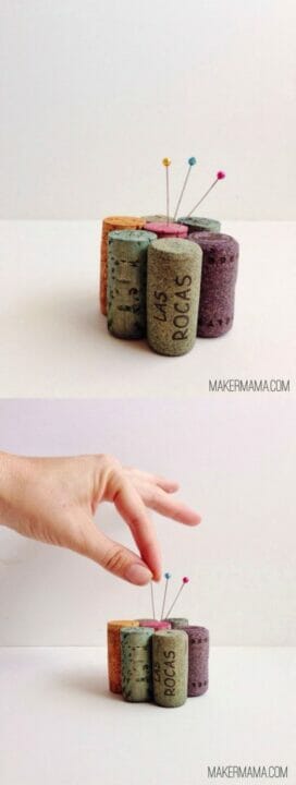 Que tal pintar cada rolha de uma cor, colar uma na outra e criar um porta agulha muito legal? Clique AQUI.