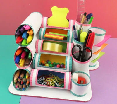Hoje é dia de reciclar! Reciclar pra casa toda! Reciclar tudo: tampinhas de garrafa, caixotes de madeira, esses isopores de queijo e presunto, rolinhos de papel higiênicos.