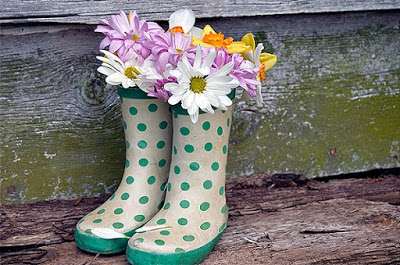 Botas velhas? Não as jogue fora não, olha só: podem ser utilizadas para colocarmos flores.