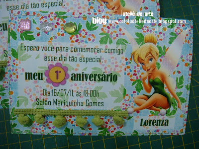 Abaixo, o convite! Enfeitado com bijoux para dar aquela graça e a renda toda feminina e linda para completar!