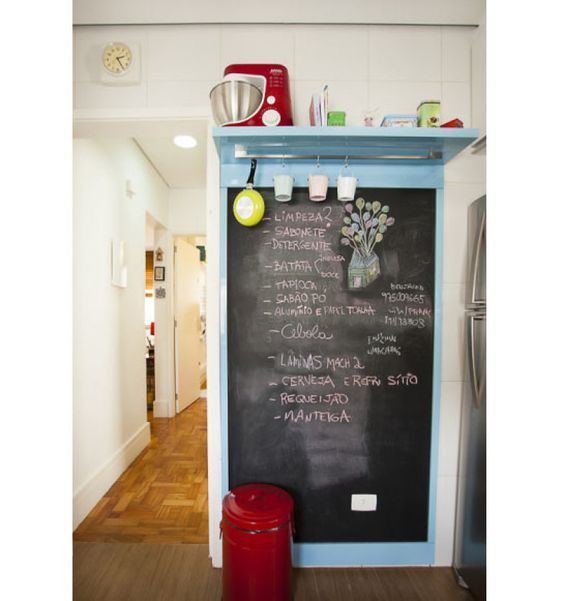 Transformar uma parede inutilizada em chalkboard, além de ser útil é lindo! Clique AQUI.