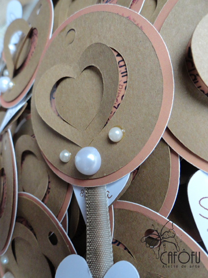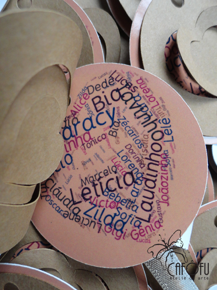 A parte de dentro do tag foi feita pelas cliente. Todos os nomes dispostos dentro de um coração.