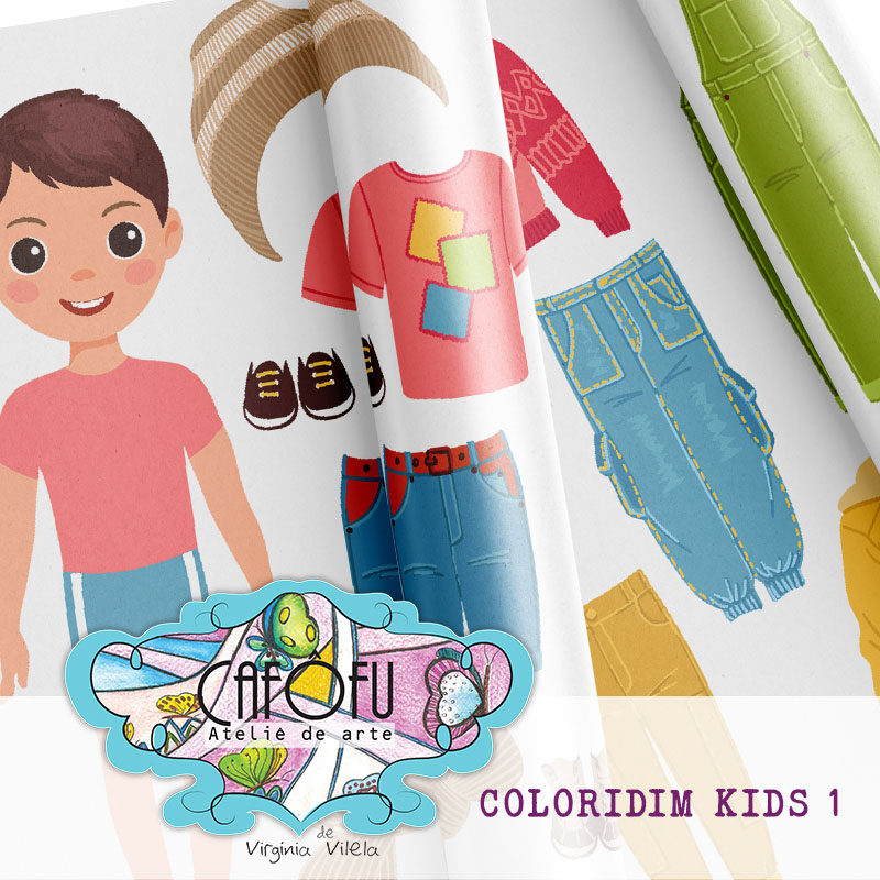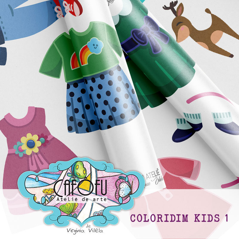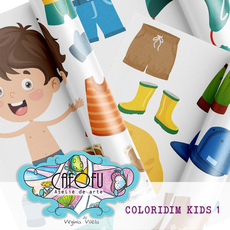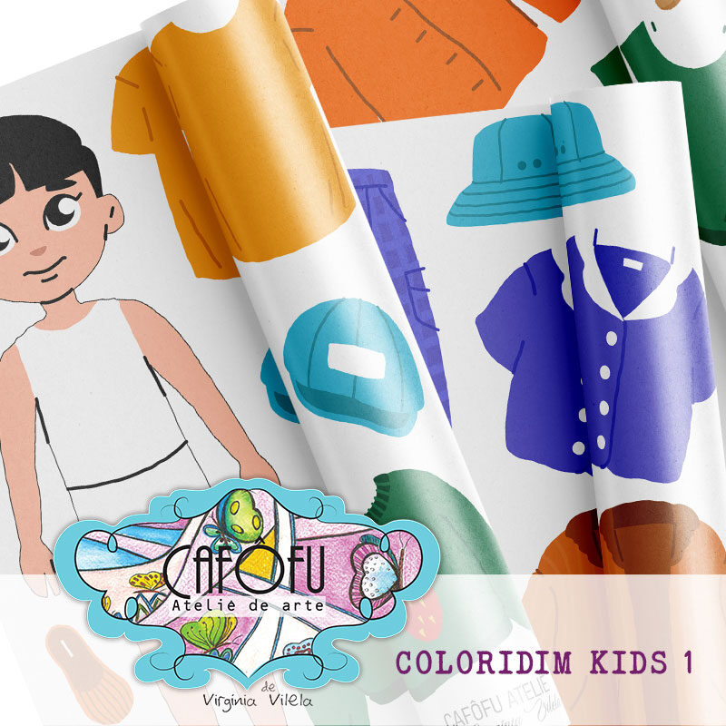 Kit digital Coloridim kids 01 – Paper dolls – crianças para vestir e brincar é perfeito para quem ama criar cenários lúdicos, brincar com moda e dar asas à imaginação em projetos digitais e impressos.