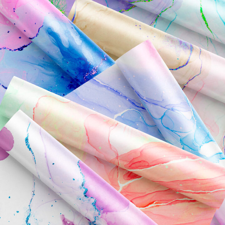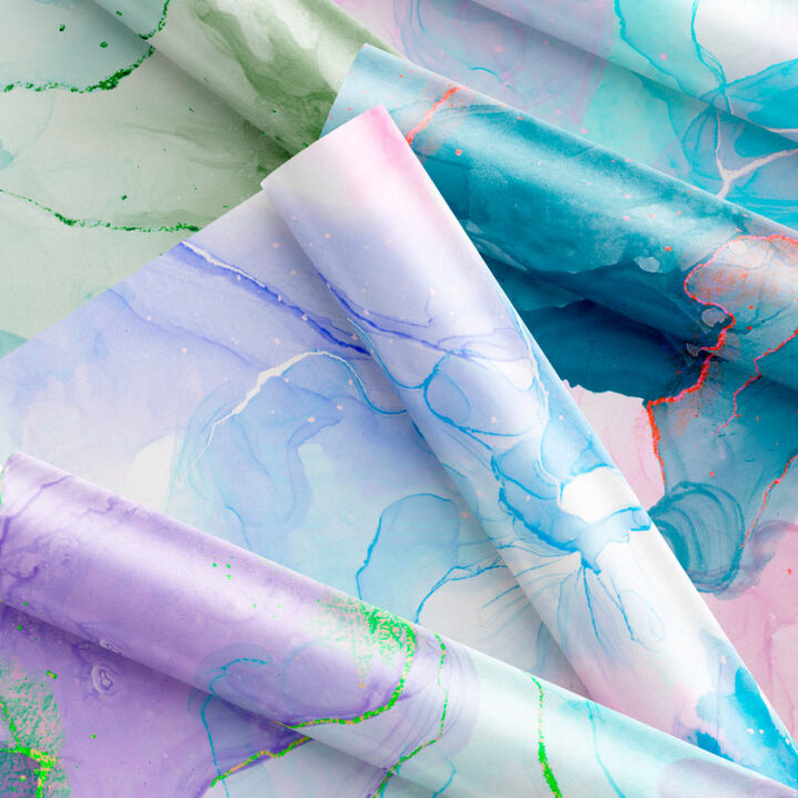 Muito papel lindo com efeito mármore aquarelado para você usar e abusar!
