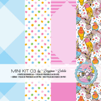 Um kit digital com poucos papéis, poucos printables, muitas vezes sem os elementos em PNG, desenvolvido para um projeto específico ensinado nas Lives Cafofando! Com preço mais em conta – o Mini Kit!